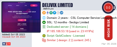 Advertising |  Add Project  What is HYIP? | Privacy Policy | Terms of Use | About | Send Feedback