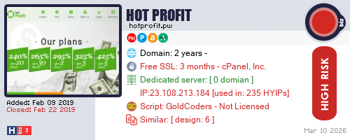 Advertising |  Add Project  What is HYIP? | Privacy Policy | Terms of Use | About | Send Feedback