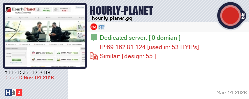 Advertising |  Add Project  What is HYIP? | Privacy Policy | Terms of Use | About | Send Feedback