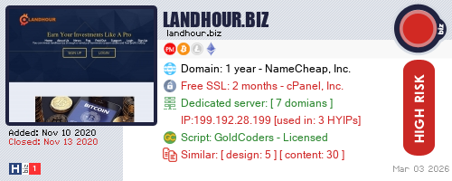 Advertising |  Add Project  What is HYIP? | Privacy Policy | Terms of Use | About | Send Feedback