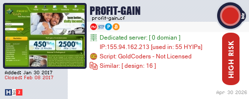 Advertising |  Add Project  What is HYIP? | Privacy Policy | Terms of Use | About | Send Feedback